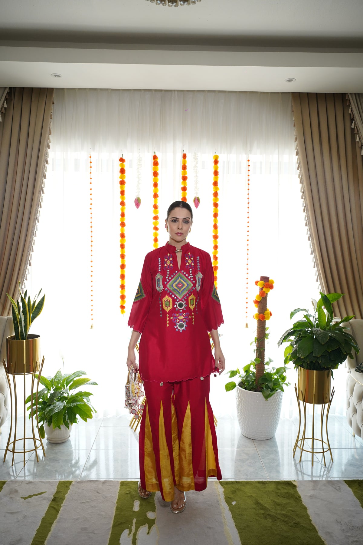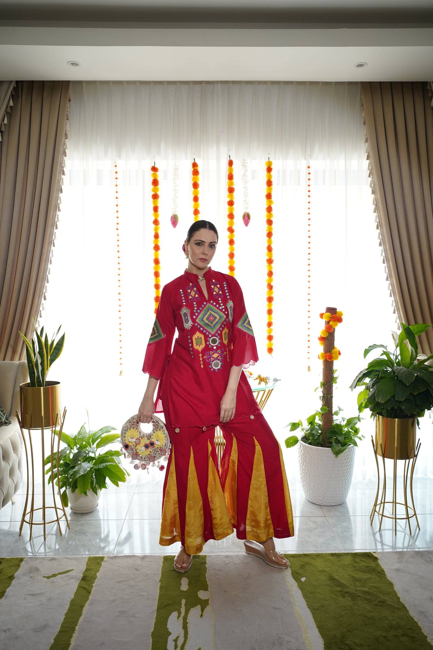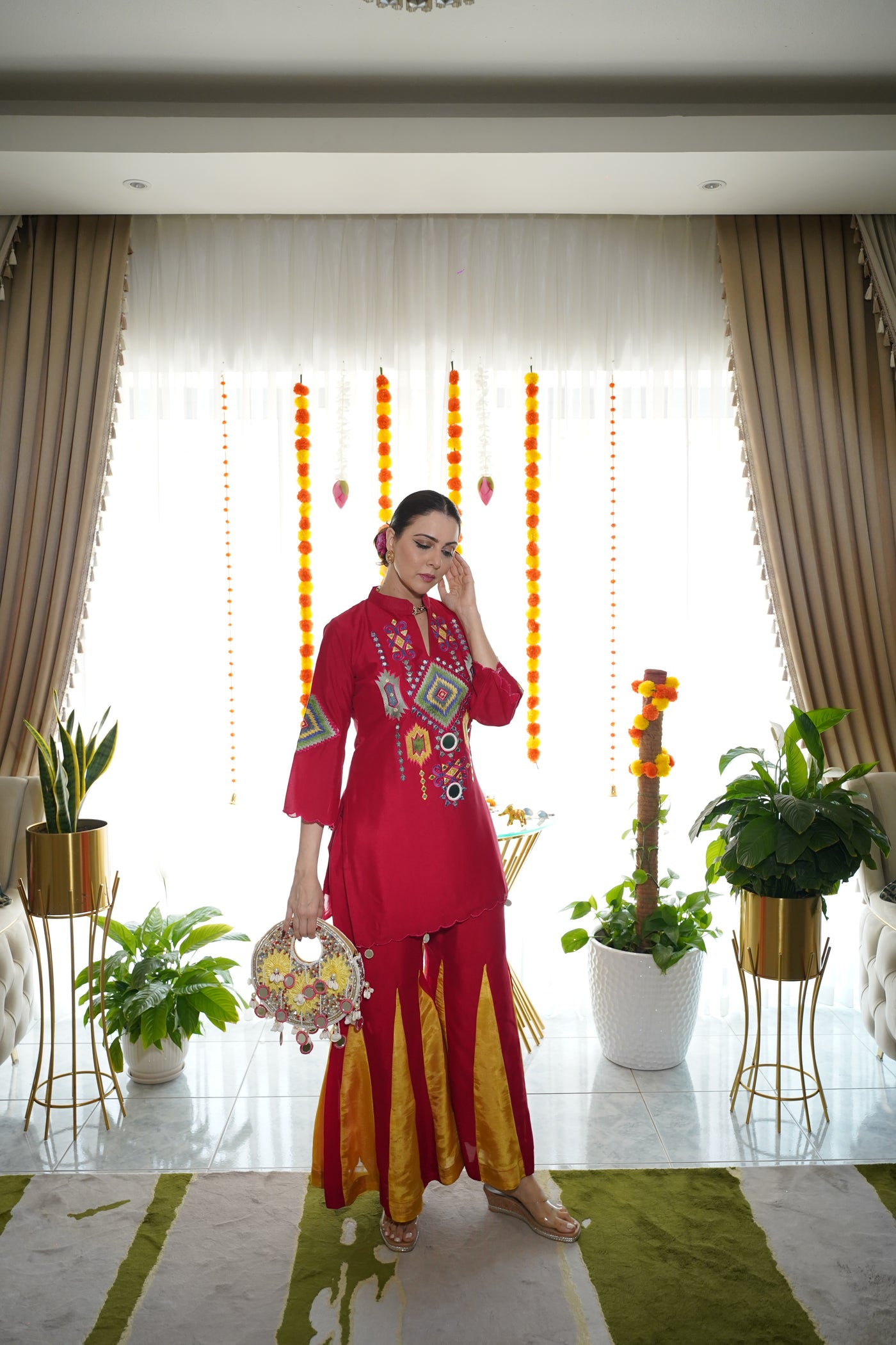 Elegant co-ord set crafted in premium cotton silk, featuring intricate embroidery with vibrant motifs. Designed for comfort and style, this set is perfect for festive occasions, celebrations, and ethnic gatherings.